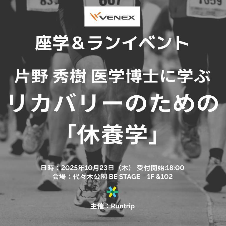 VENEX創業者 片野 秀樹 医学博士に学ぶリカバリーのための「休養学」 ―座学&ランイベント―
